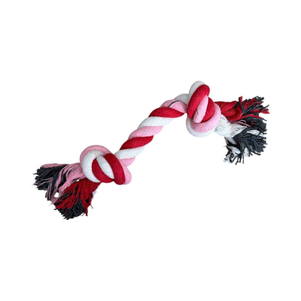 A két végén található kötélrojtos rész plusz izgalmat ad a kutyának, a középső csomó pedig stabil fogást biztosít a játék során.