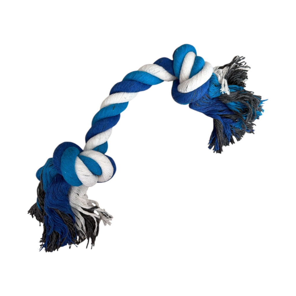 A két végén található kötélrojtos rész plusz izgalmat ad a kutyának, a középső csomó pedig stabil fogást biztosít a játék során.