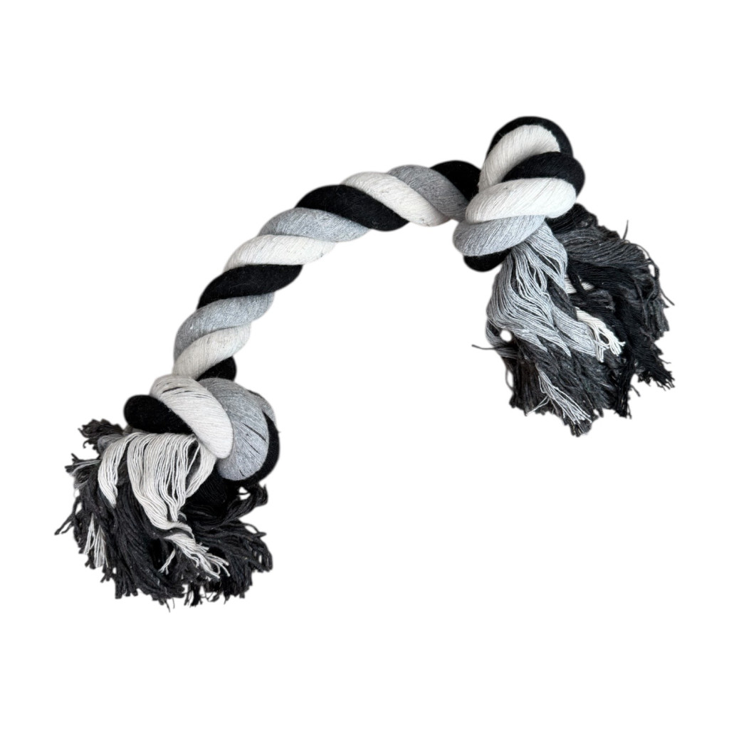 A két végén található kötélrojtos rész plusz izgalmat ad a kutyának, a középső csomó pedig stabil fogást biztosít a játék során.