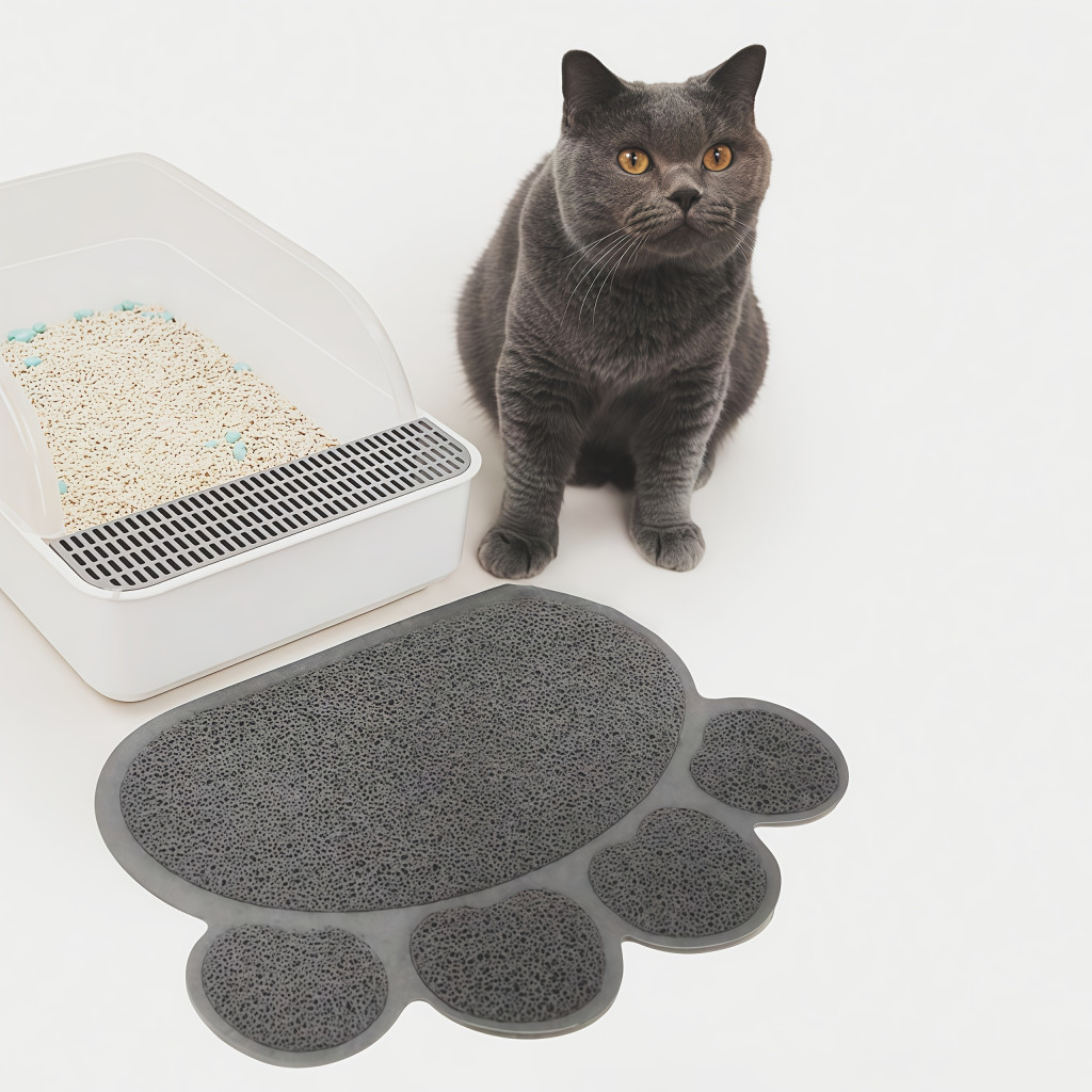 Praktikus és stílusos macskamancs formájú alomtálca alátét, amely segít tisztán tartani a lakást.