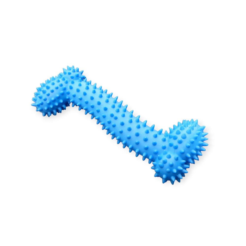A rugalmas gumi anyag ellenáll a harapásoknak, míg a tüskés felület masszírozza az ínyt és segít eltávolítani a lepedéket a fogakról.