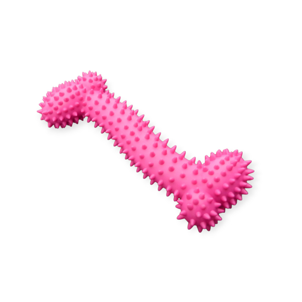 A rugalmas gumi anyag ellenáll a harapásoknak, míg a tüskés felület masszírozza az ínyt és segít eltávolítani a lepedéket a fogakról.