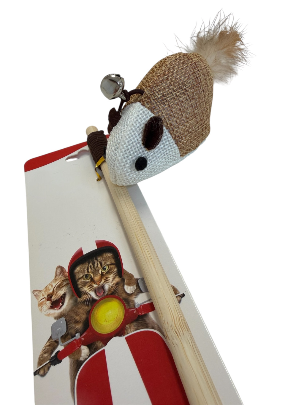A természetes juta anyagból készült egér puha, mégis strapabíró, a tollas farok pedig leköti a cica figyelmét.