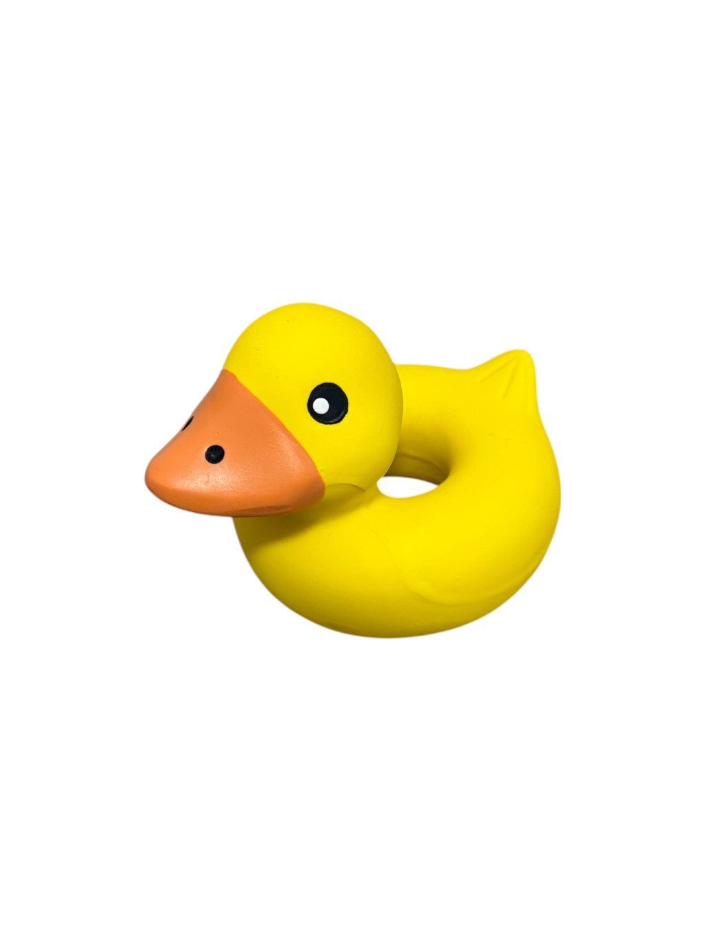Puha, mégis ellenálló gumiból készült, így kíméli a fogakat, miközben játék közben csipogó hangjával extra izgalmat nyújt.