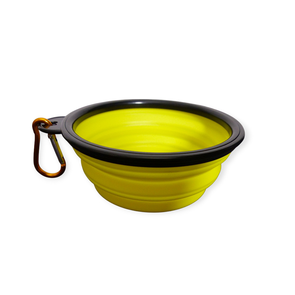 Összecsukható szilikon utazótál kutyáknak/macskáknak citromsárga