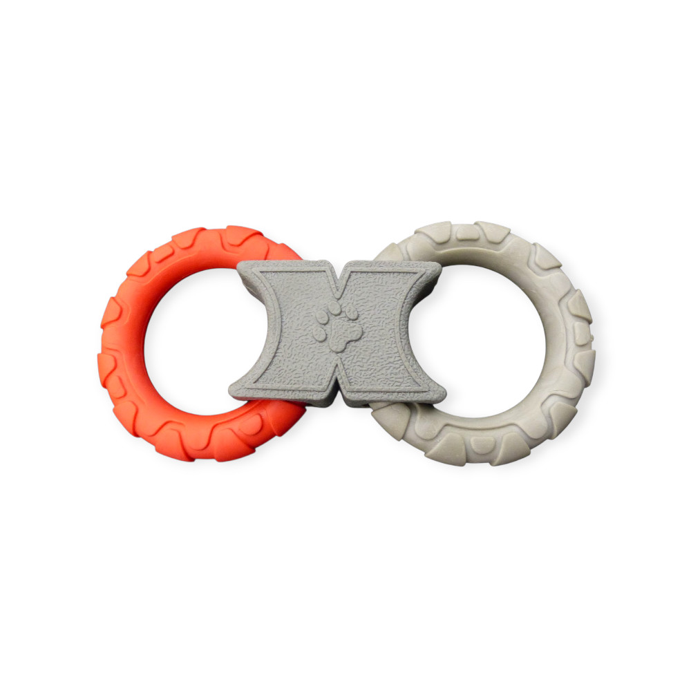 Két összekapcsolt, masszív gumigyűrűből áll, amelyek rugalmasak, de harapásállók – így remekül bírják a húzást és a rágást is.